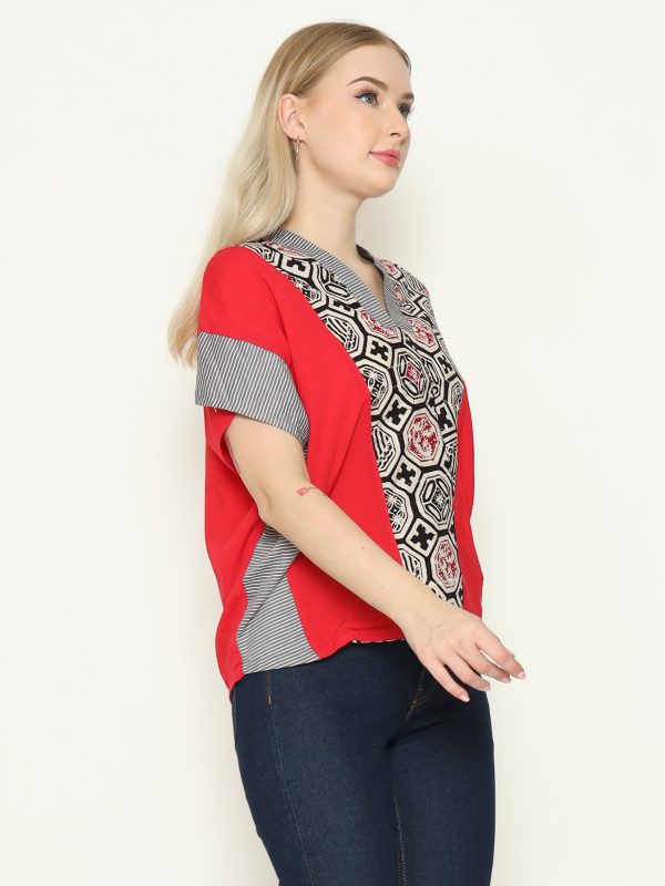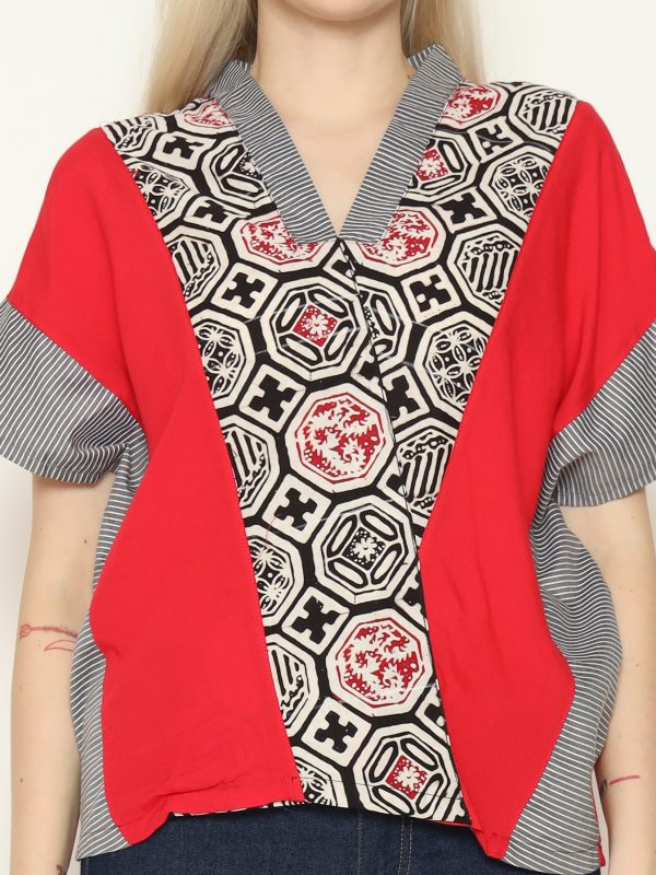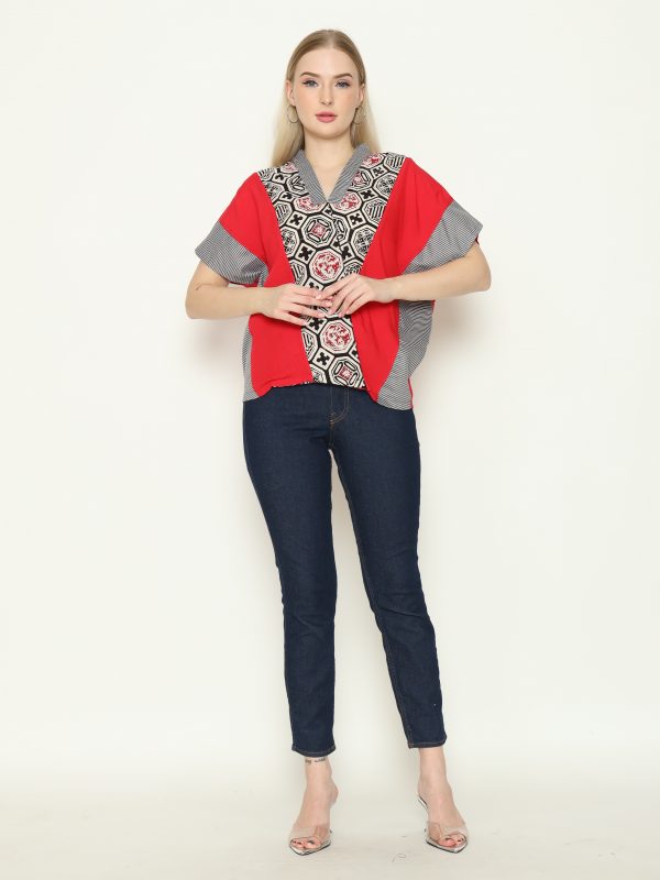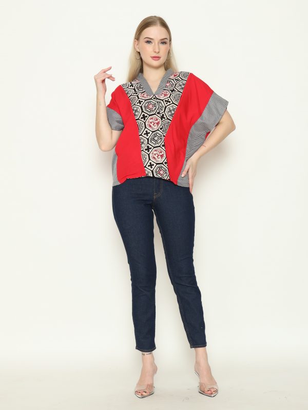 1. Blouse batik cap berdesain kimono detail multi pattern