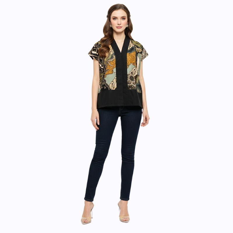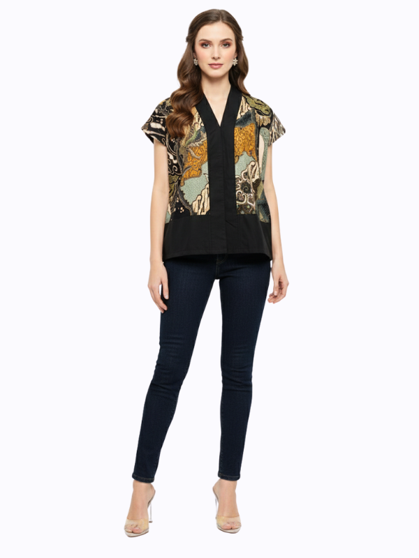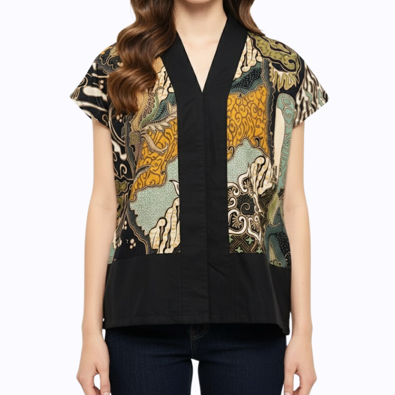 1. Blouse batik cap untuk tampilan etnik modern yang chic