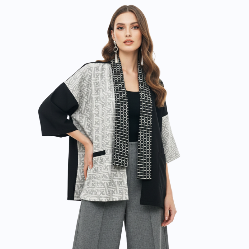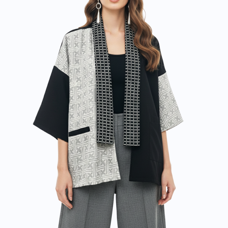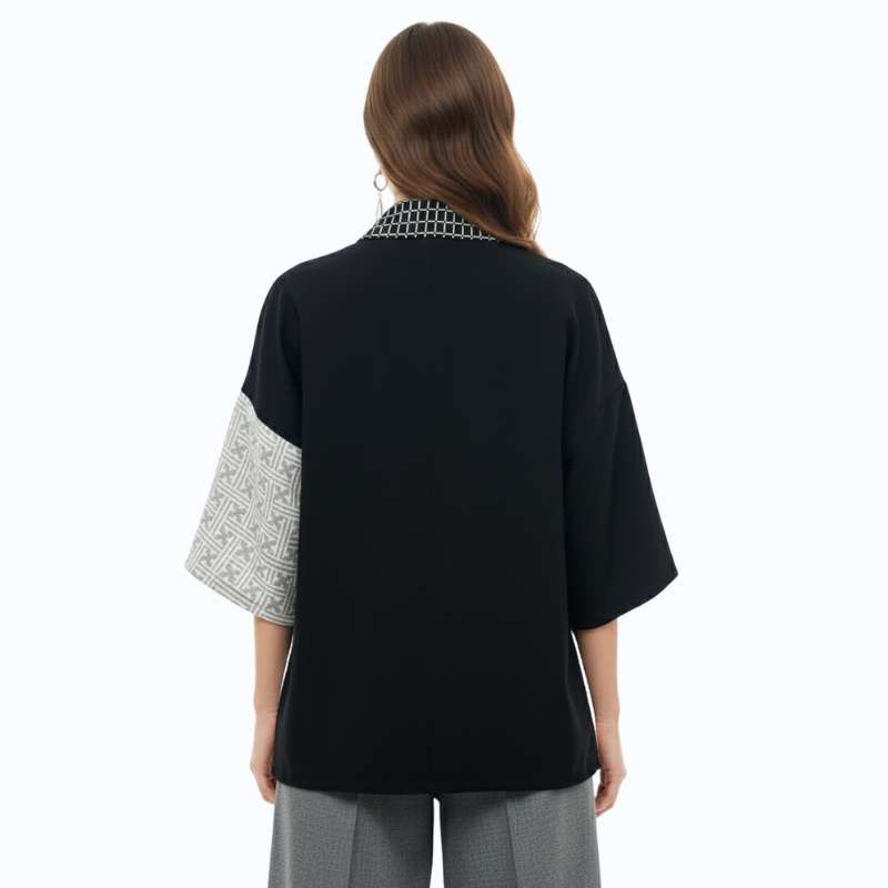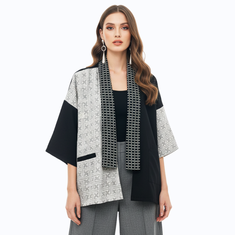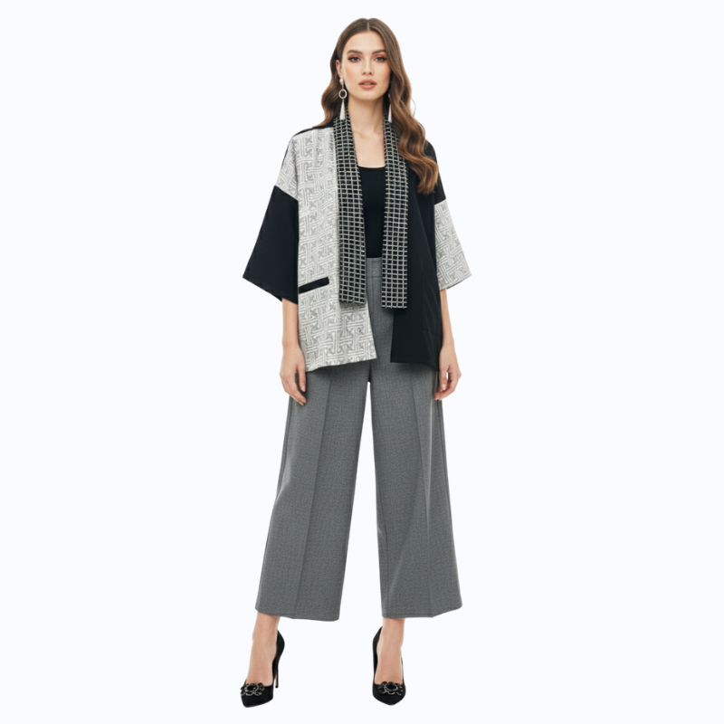 7. Material tenun kombinasi tidak transparan, ringan, dan tidak stretch