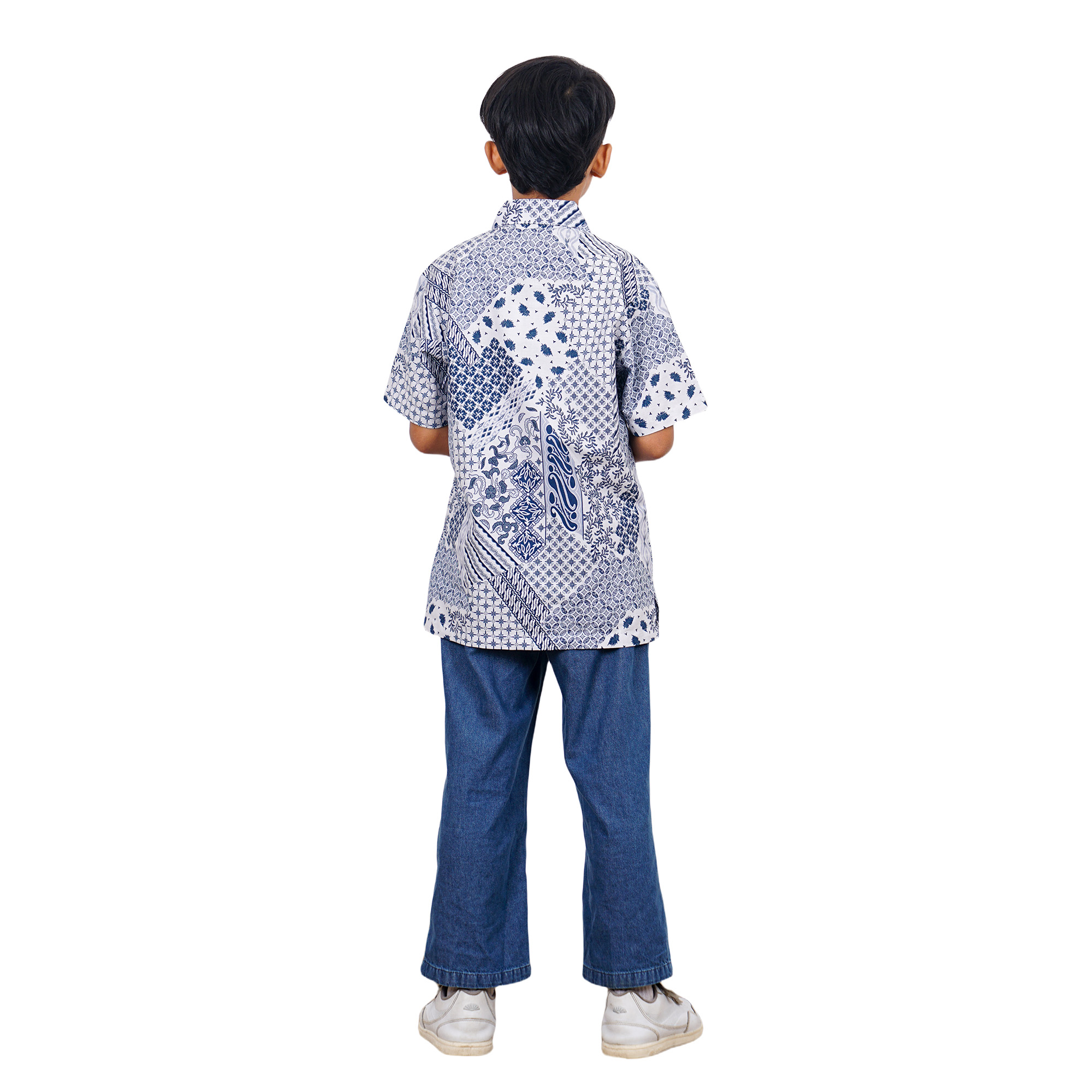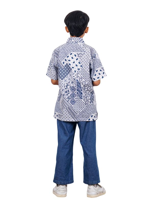 1. Kemeja batik print dengan detail motif batik cap yang elegan