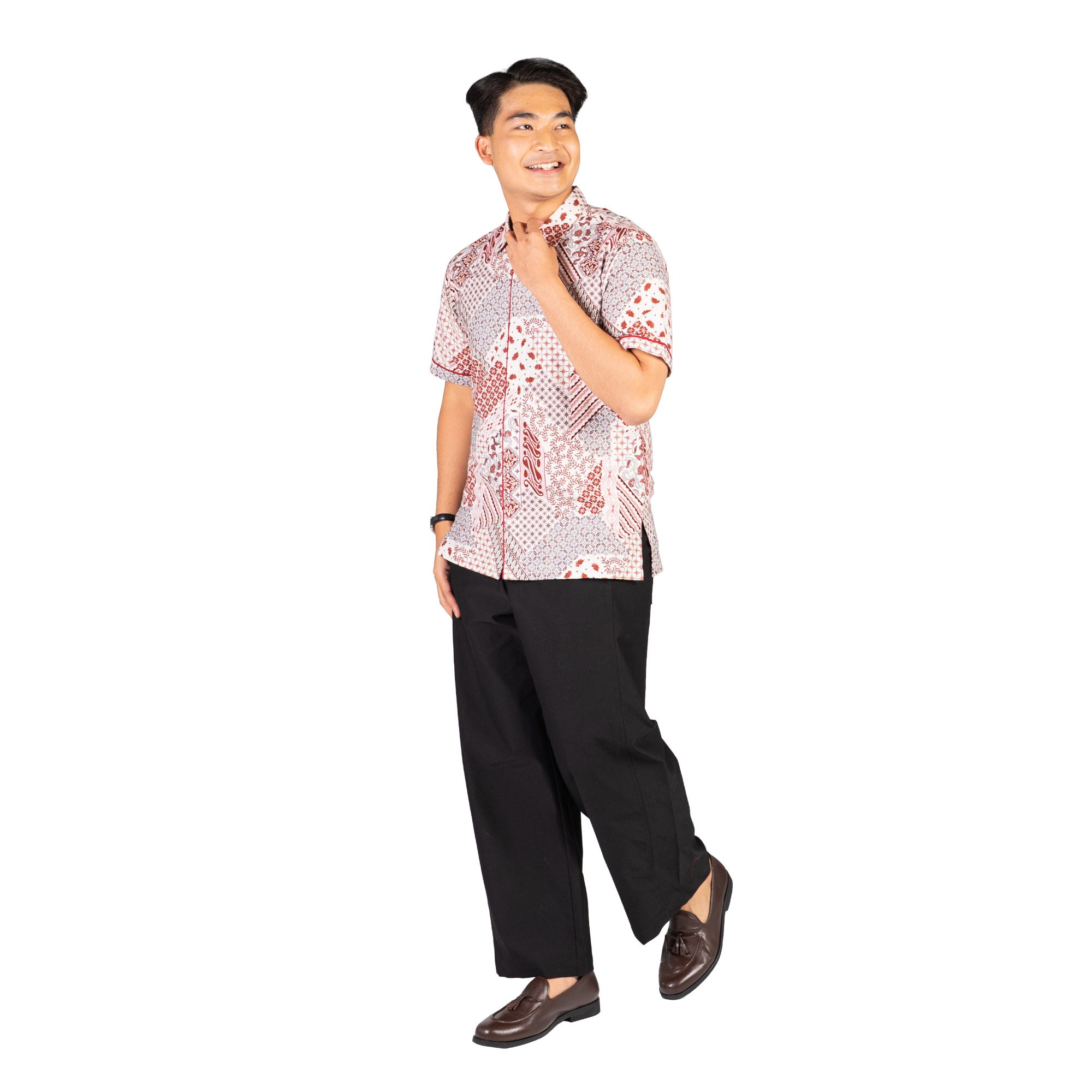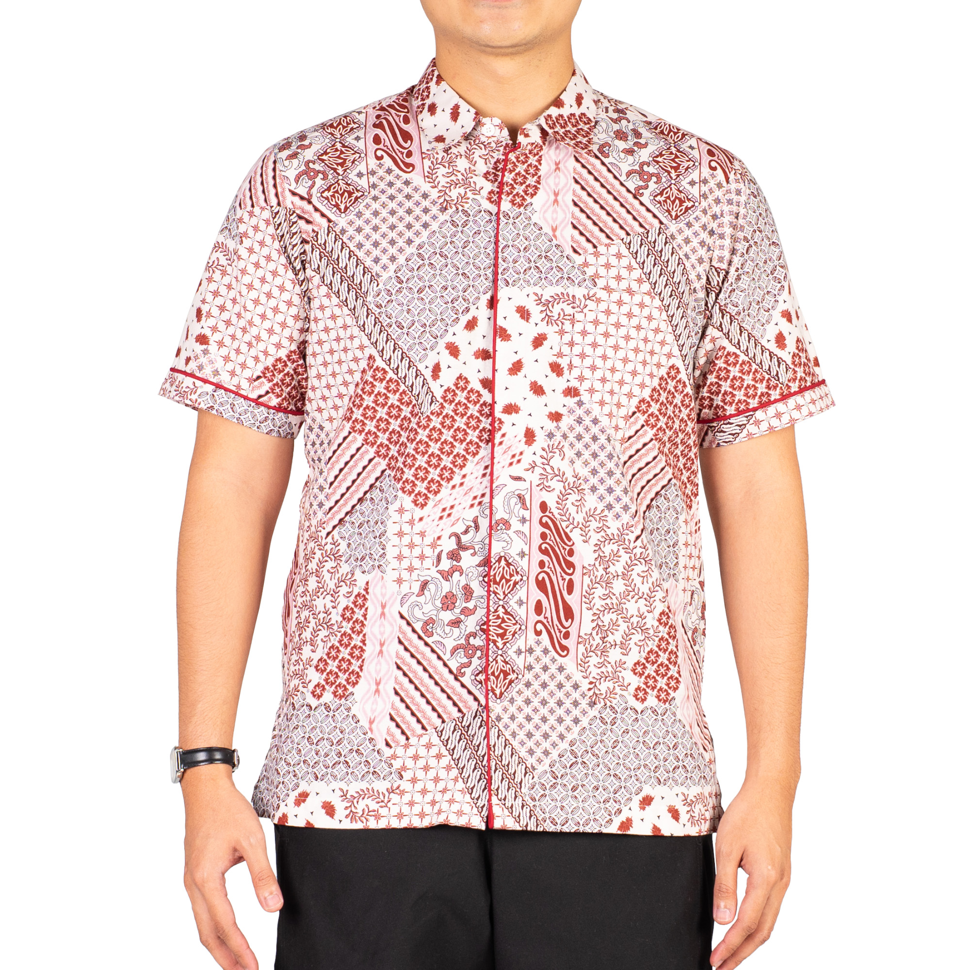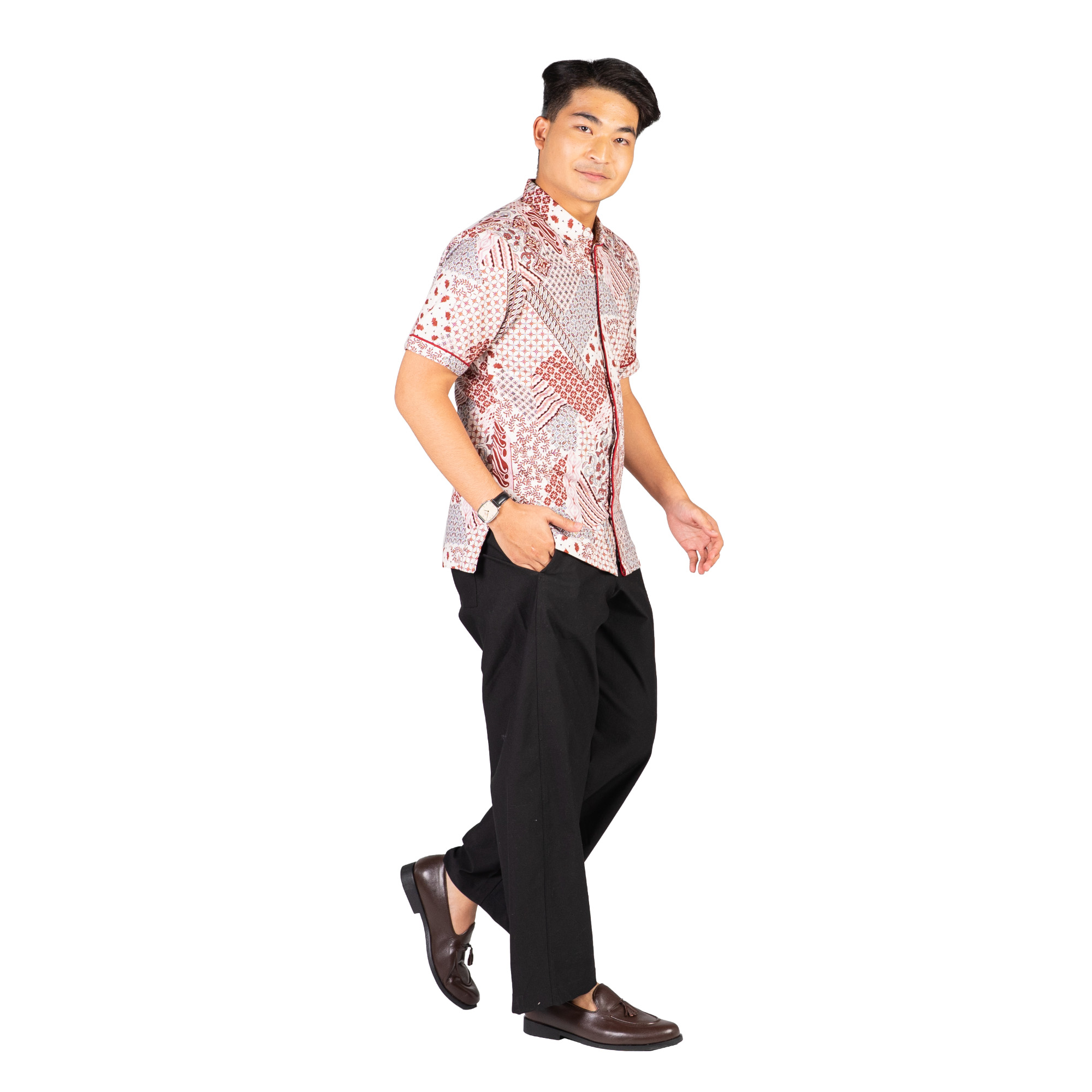 1. Kemeja batik print dengan detail motif batik cap yang elegan
