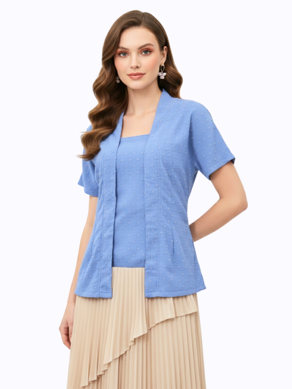 1. Blouse desain kutubaru dengan aksen batik cap bergaya ethnic modern